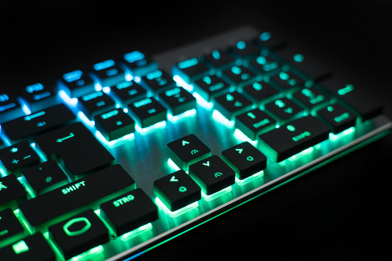 扁平的键帽采用Chiclet布局,Cooler Master SK651不仅可以快速打字,而且手腕轻柔。由于外壳的额外的最小倾斜度意味着接头不会承受太大的压力,因此可以更符合人体工程学地工作。它们也是坚固耐用且经久耐用的PBT双键键帽。