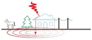 雷电电流在两个方向上均等地分流,穿过中压/低压变压器并产生过电压,尤其是在连接到地线的所有地方。